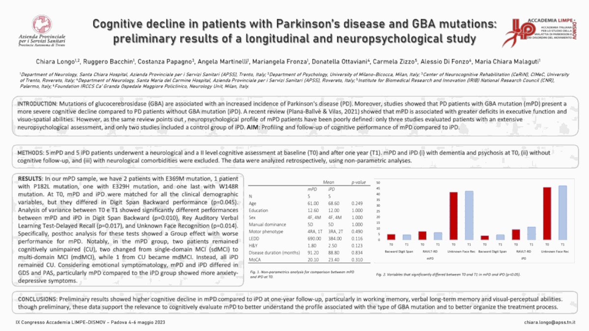 P7 Declino cognitivo in pazienti con malattia di Parkinson e mutazione GBA: risultati preliminari di uno studio neuropsicologico longitudinale