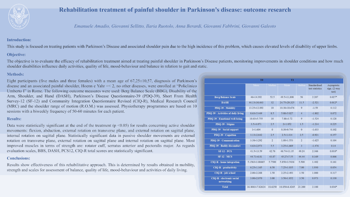 P113 Trattamento riabilitativo per la spalla dolorosa nella malattia di Parkinson: outcome research