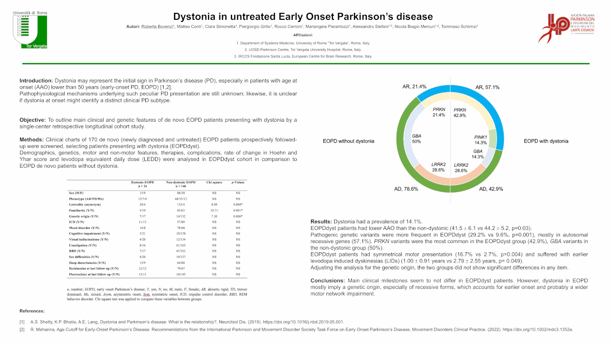 G. Di Francesco, C. Defilippi, L.M. Broscautanu, C. Ledda, M. Tangari, A. Covolo, C.A. Artusi, E. Montanaro, M. Zibetti, M.G. Rizzone, M. Bozzali, L. Lopiano, A. Romagnolo