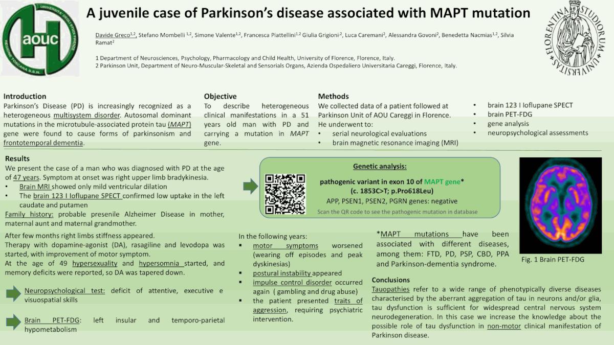 P155 Un caso di malattia di Parkinson giovanile associata a una mutazione di MAPT