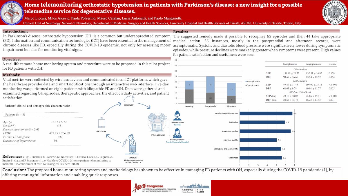 P173 Telemonitoraggio domiciliare dell'ipotensione ortostatica nei pazienti con malattia di Parkinson: un nuovo spunto per un possibile servizio di telemedicina per le malattie degenerative