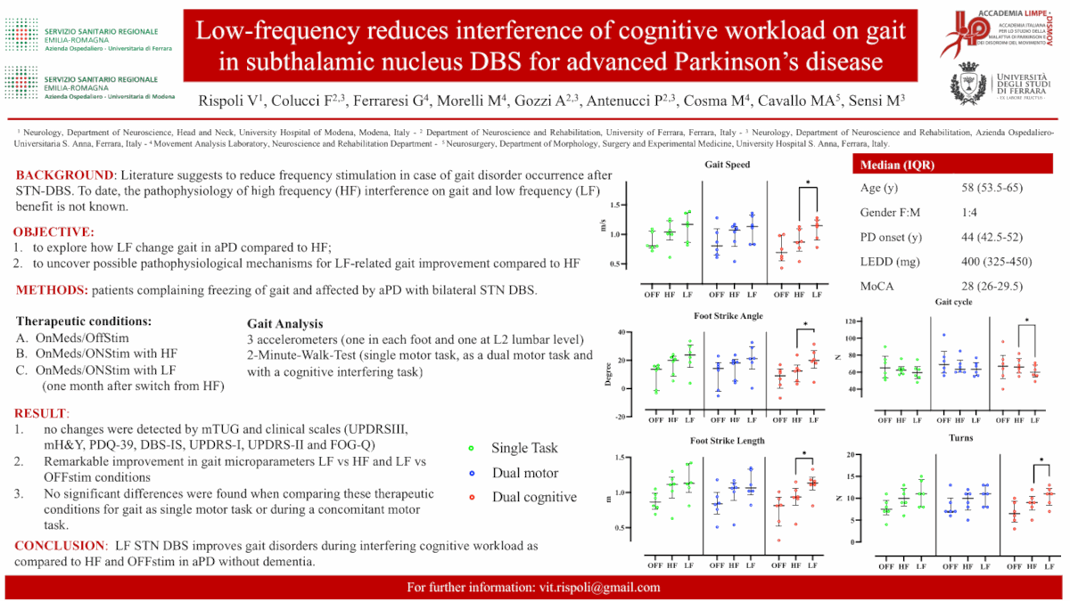 P19 La stimolazione a bassa frequenza riduce l’interferenza di compiti cognitivi sul cammino nella malattia di Parkinson in fase avanzata trattata con stimolazione cerebrale profonda