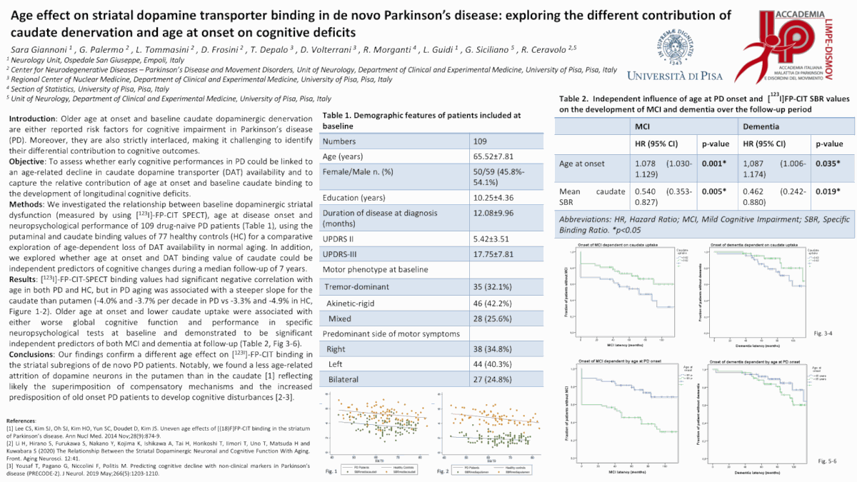 P102 Effetto dell’età sul pattern di degenerazione striatale in pazienti con malattia di Parkinson de novo: esplorando il differente contributo della denervazione del caudato e dell’età all’esordio sui disturbi cognitivi