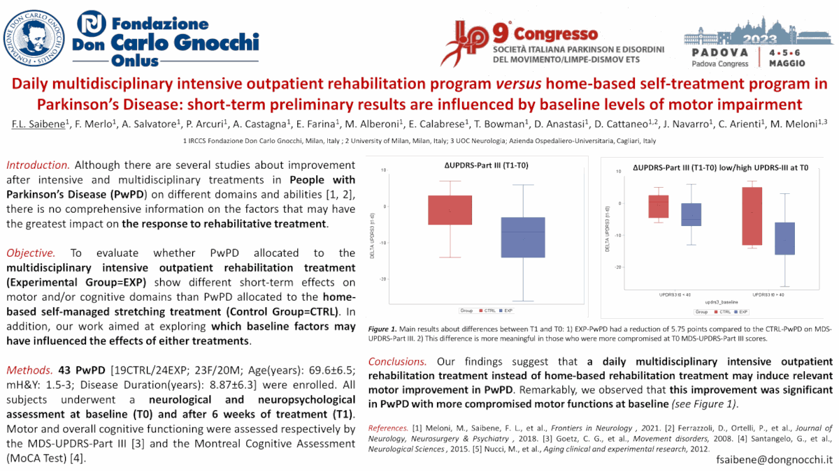 P111 Un programma riabilitativo giornaliero ambulatoriale multidisciplinare intensivo versus un programma di auto-trattamento domiciliare nella malattia di Parkinson: i risultati preliminari a breve termine sono influenzati dai livelli di compromissione motoria iniziale