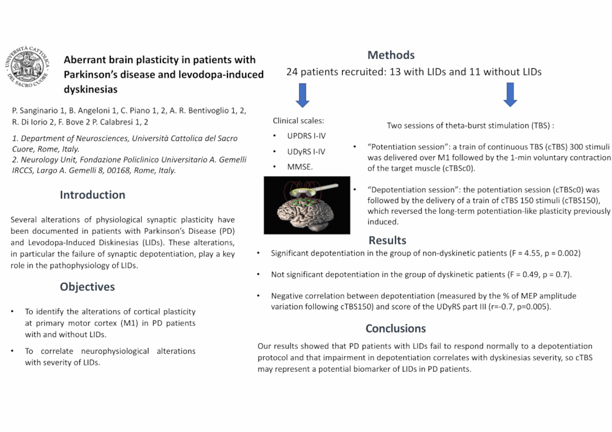 P130 Plasticità sinaptica aberrante in pazienti affetti da malattia di Parkinson e discinesie levodopa-indotte