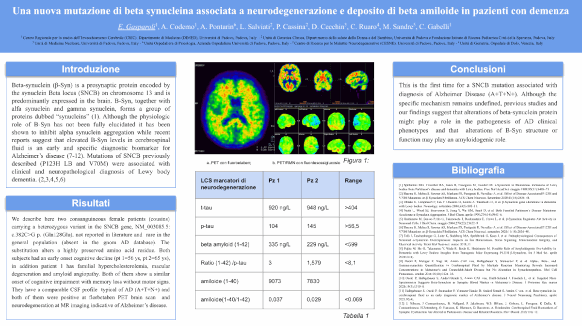 P159 Una nuova mutazione di beta synucleina associata a neurodegenerazione e deposito di beta amiloide in pazienti con demenza