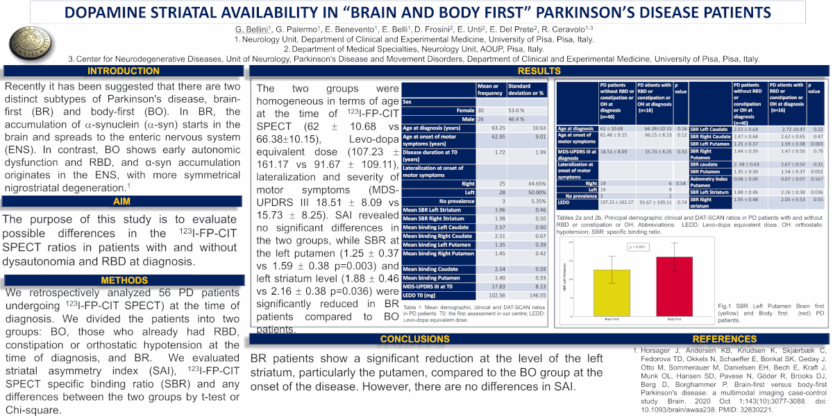 E. Fiorenzato, A. Antonini, L. Weis, R. Biundo, V. D'Onofrio, F. Ferreri, S. Moaveninejad, C. Porcaro