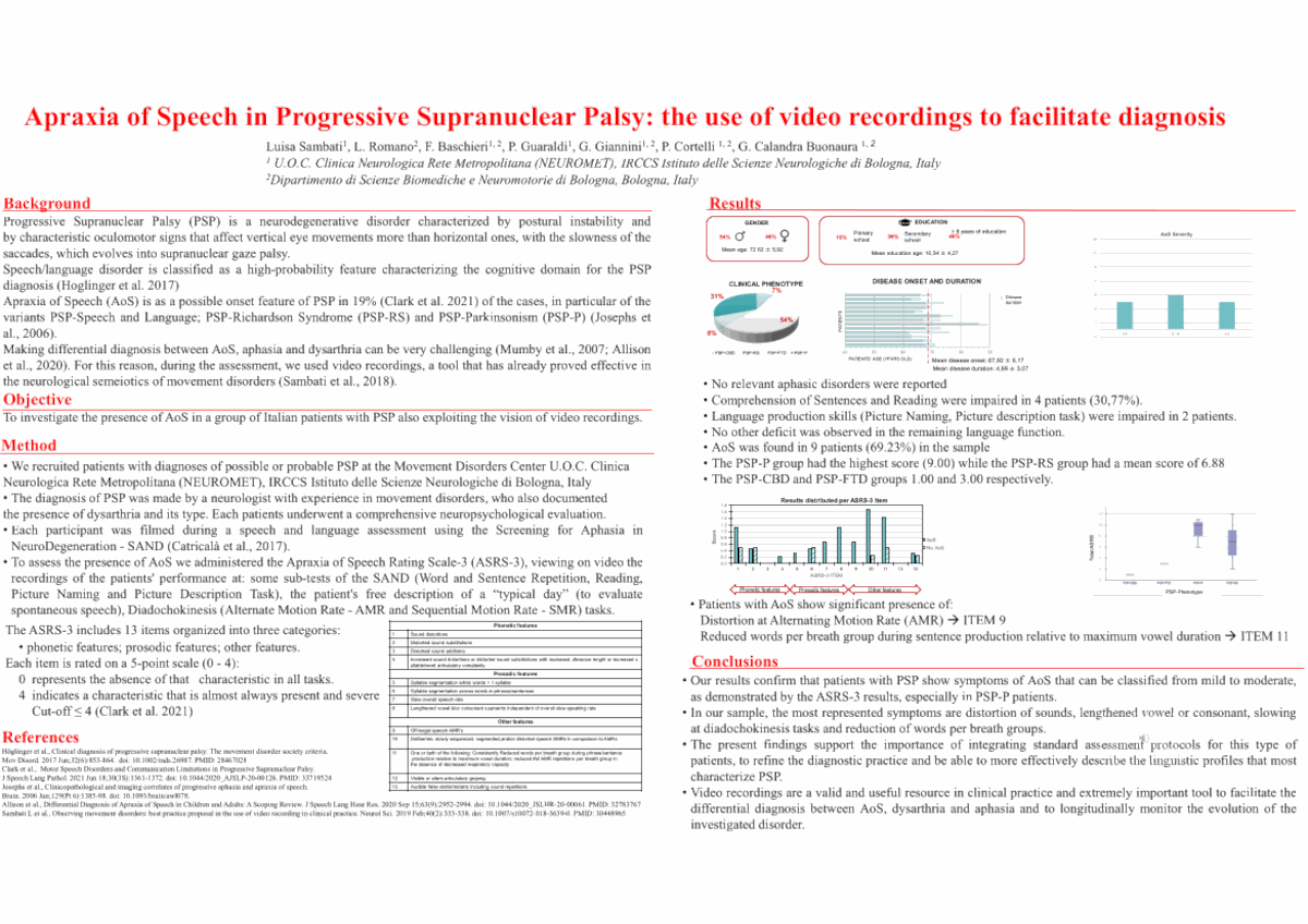 P30 Aprassia del linguaggio nella paralisi sopranucleare progressiva: l'utilizzo della registrazione video per facilitare la diagnosi