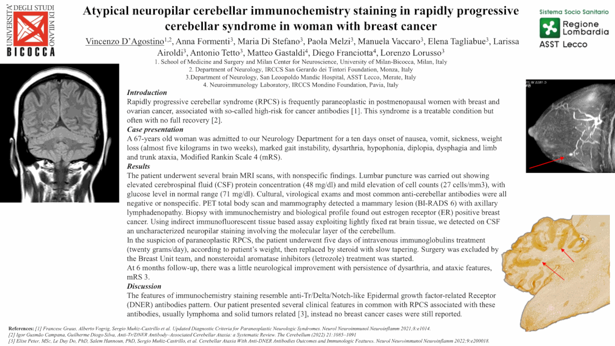 P49 Reperti neuropilari atipici all’immunoistochimica in donna con sindrome cerebellare rapidamente progressiva e tumore della mammella